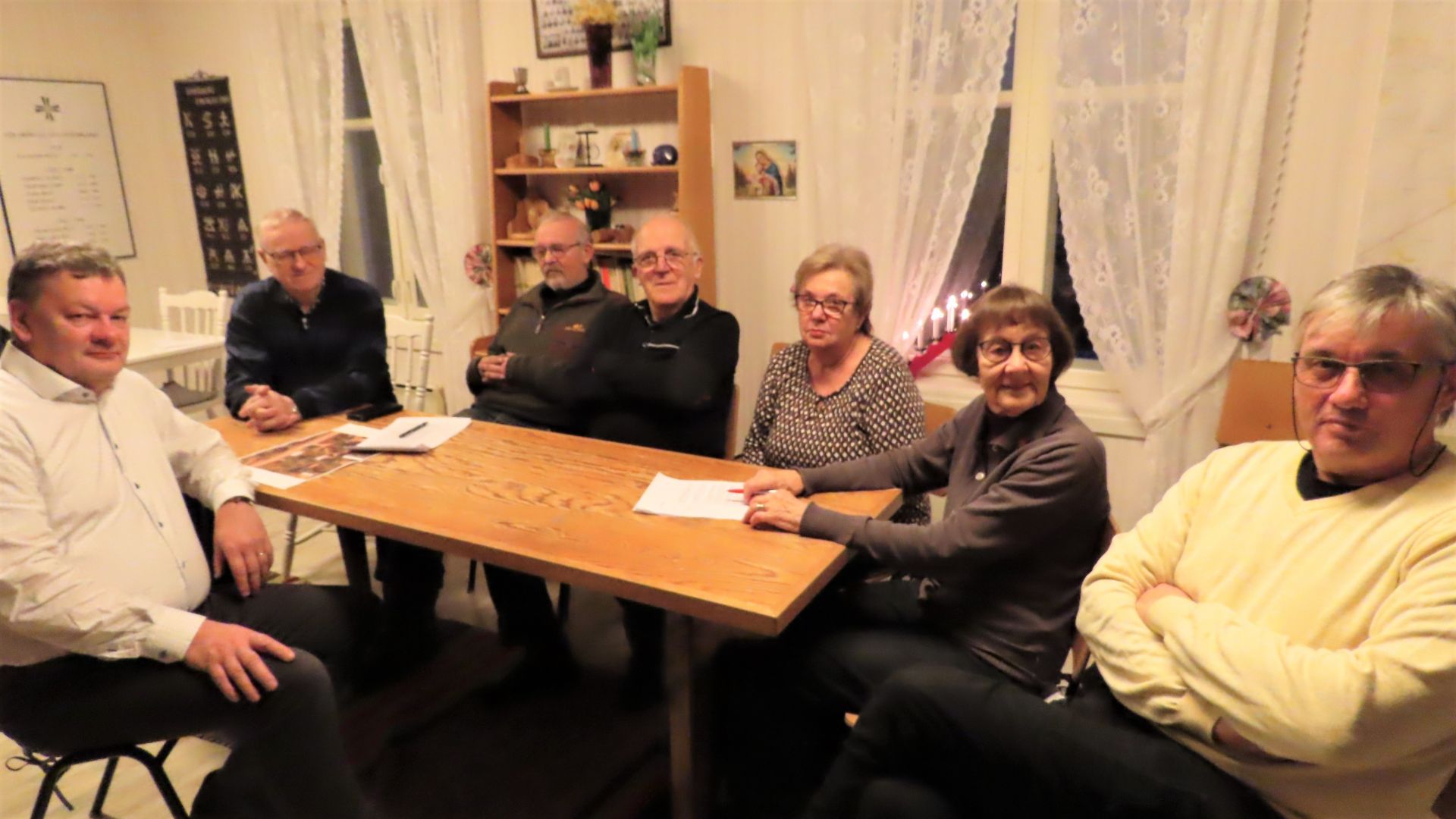 Gåvobreven undertecknades i Marthabo den 16 december, från vänster Dan Örndahl, Johannes Hjortman, Tore Norrgård, Holger och Christel Nybäck, Ulla-Maj Salin och Fredrik Hagberg.