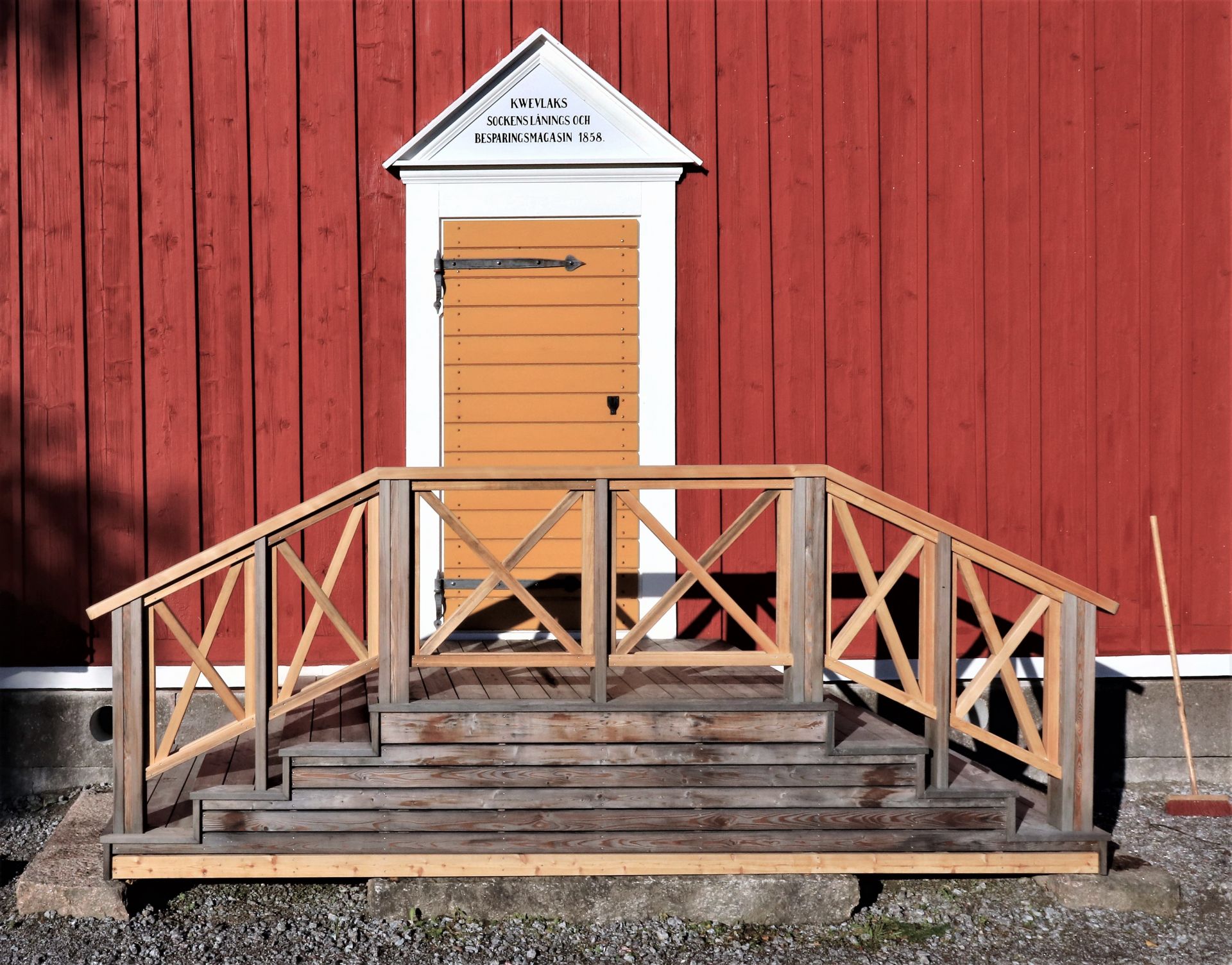 I samband med nystarten av Kvevlax Hembygdsförening och uppgraderingen av Sockenmagasinet till ett mera lätt tillgängligt muséum uppstod behov av dels en funktionell parkering och dels tillgång till den östra sidans nya ingång. Den ursprungliga ingången från landsvägen var synnerligen opraktisk och rent av farlig på grund av den livliga trafiken.