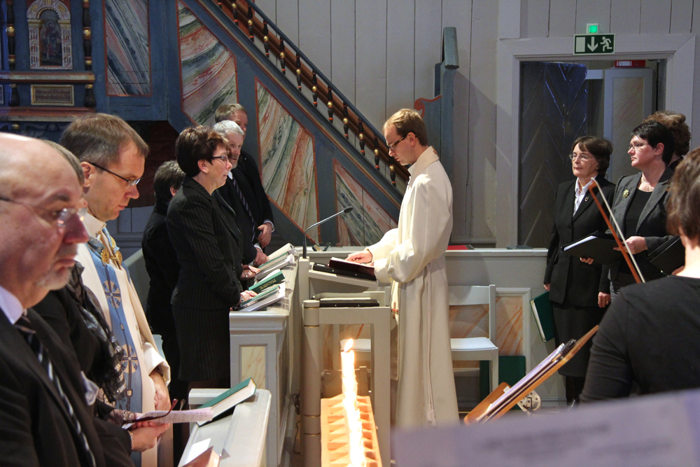 Kyrkoherde Anders Lundström ledde den stämmningsfyllda minnesgudstjänsten i Kvevlax kyrka.