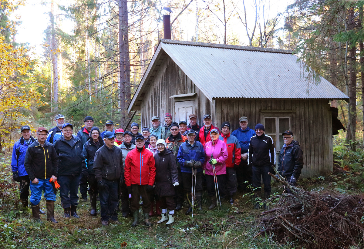 Målet för kyrkvägs-vandringen hösten 2017 var Lövhyddan mellan Kvevlax och Gamla Vasa. Hyddan är anlagd på den gamla träskbottnen vid Storhamnträsket, som torrlades under åren 1852-1875.