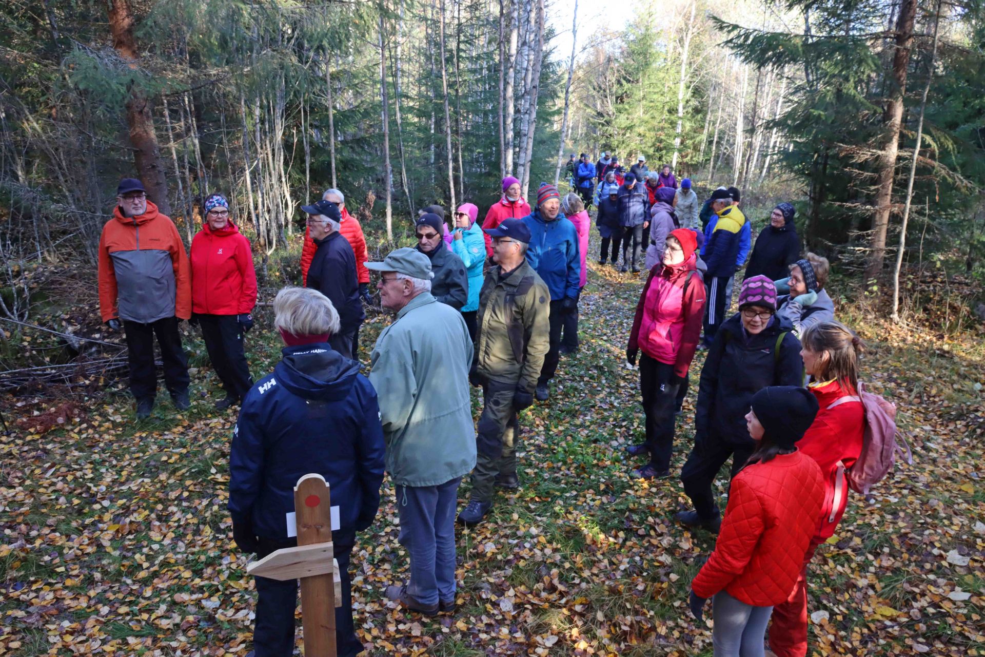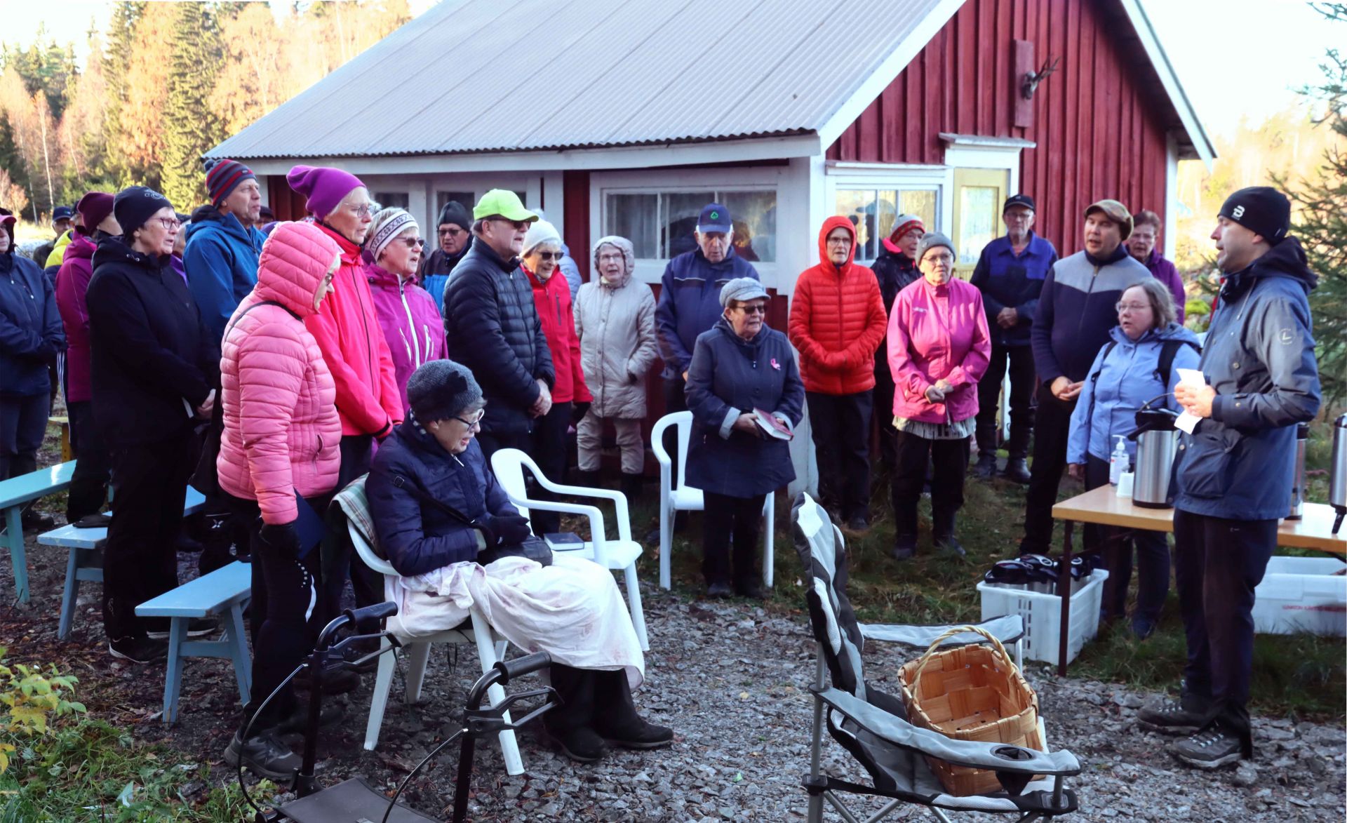 Höstsöndagen den 9 oktober hade Kvevlax församling kallat till en annorlunda gudstjänst. Gudstjänsten firades i samarbete med Kvevlax hembygdsförening mitt i skogen invid den vandringsled som hembygdsföreningen nyligen färdigställt. Platsen kallas Vilanbacken och utgör platsen där forntida färdmän- och kvinnor tagit paus och vilat på väg till kyrkan och samhället i Mussor. (Mustasaari). Vad kan vara mera lämpligt än att dagens kyrkfolk samlas till vila och gudstjänst på samma plats, här invid Solhyddan - Carl-Gustav och Greta Hjortmans skogstuga. Det var ingen liten menighet - 65 personer, av vilka 2/3 hade kyrkvandrat den längre sträckan. Övriga hade kommit med cykel eller bil eller vandrat den kortare delen av leden. Ett värmande kyrkkaffe väntade vid ankomsten och sittplatser erbjöds på hitförda bänkar och stolar. Med psalmen ”Gud, ditt folk är vandringsfolket” inleddes gudstjänsten som kyrkoherde Fredrik Kass höll kring temat livsvandring, pilgrimsvandring och naturens kravlöshet och välgörande kraft. Som avslutningspsalm sjöngs ”Härlig är jorden”.
