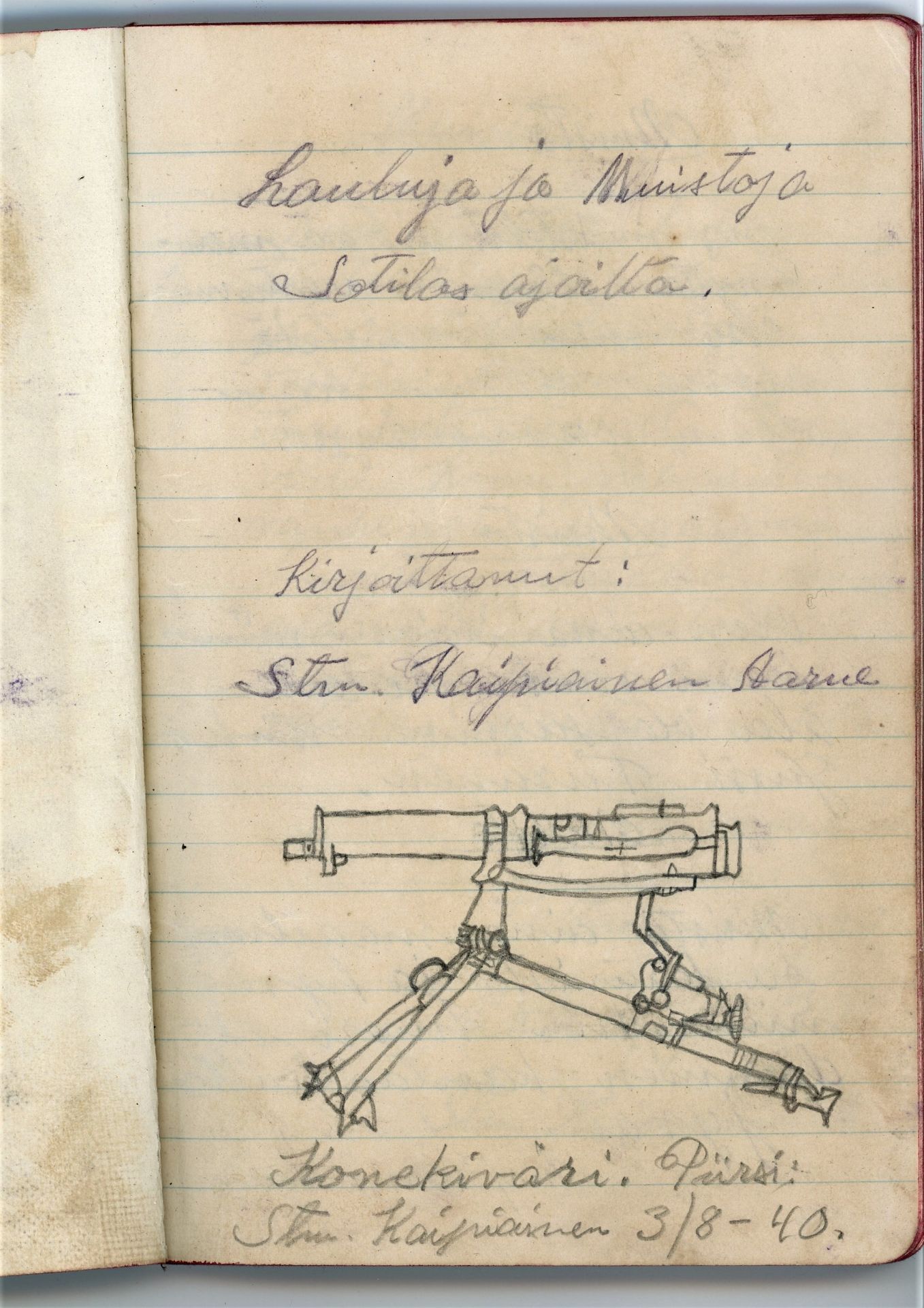 Aarnes minneshäfte från hans militärtid sommaren 1940, häftet fanns i Einos kappsäck.